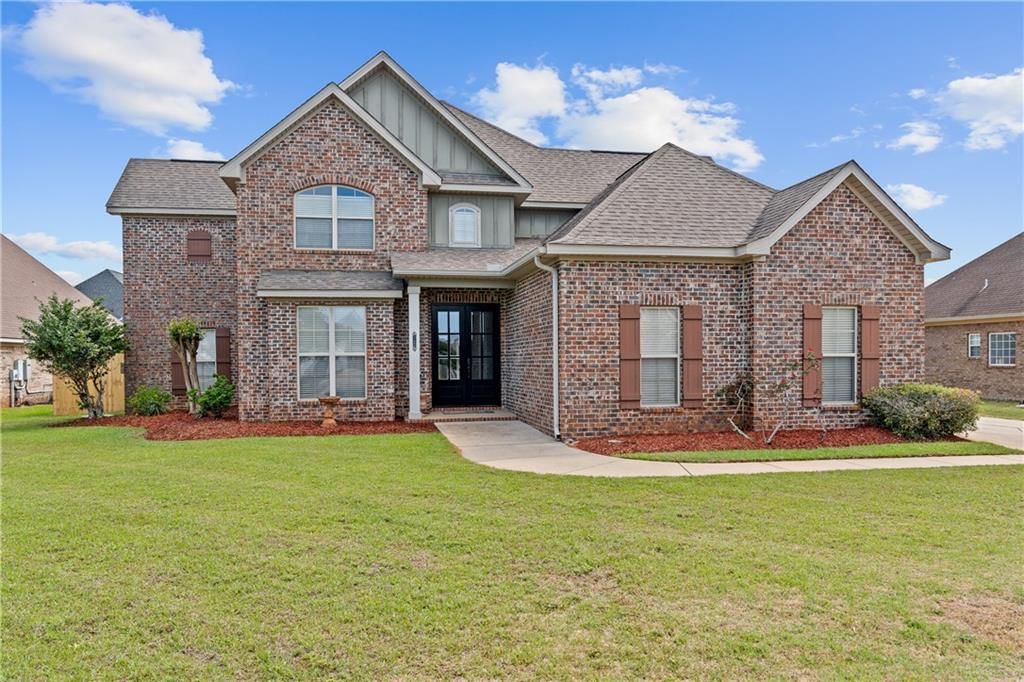 Beautiful Custom Built brick home located in one of the highly desirable neighborhoods in Daphne, Al. This home has room for all of the buyers needs. Downstairs is a separate living room, dining room, and office/sitting room area that includes a fireplace, tiled floors, a morning room and kitchen bar. The kitchen is well equipped with stainless appliances, granite countertops, a pantry, and loads of cabinets and storage. It all flows seamlessly together and offers the perfect lay out for entertaining as it accesses the outdoor living area. The primary bed and bath are large and have wood floors and a dimensional ceiling with loads of windows that add natural light and brightness into the room. The bath is well equipped with an oversized hand laid tiled shower, a whirlpool tub, a long double sink countertop and a custom shelved closet which provides additional space for storage. Upstairs is like another house. There are 3 additional bedrooms with a big media room perfect for gaming, an office, study room or workout area. Two of the three upstairs bedrooms share a hollywood bath. They each have their own sinks and share a tub/shower which is perfect for additional privacy. The other bedroom also has a bath located in the hall. Outside you'll find a covered concrete deck with an additional wooden deck and pergola. It overlooks a large back yard with a newly installed fence. There is a 3-car garage that offers room for your vehicles, storage and additional space for golf carts etc. The neighborhood has a plethora of features. There are 2 stocked ponds for fishing or relaxation, trails to walk, tennis courts, pickleball courts, a community pool and pool house, a playground, a frisbee golf course, a basketball court and additional common area to play outdoor sports. It's the perfect mix of custom house, room for everyone, and neighborhood features located close to everything Baldwin County has to offer.