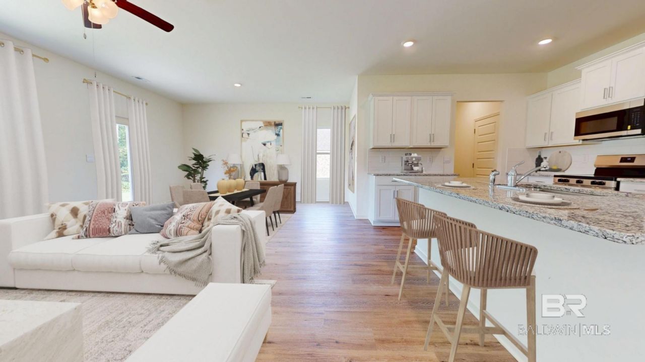 Welcome to 13137 Antler Hill Road in the Biltmore at Stonebridge new home community. This brand new Belfort floorplan features 2,256 square feet of space boasting 4 bedrooms, 2.5 bathrooms, and a 2-car garage. This modern home is as beautiful as it is functional. As you enter the Belfort, the foyer leads you past a spacious bedroom, full bathroom, laundry room, and garage. Continue down the hall to the fabulous open kitchen featuring a walk-in pantry and large island (with overhang) that overlooks the dining and living room combination leading outside to a covered porch for an extended living and entertaining space. The Private Suite, connected off the living room, is filled with natural light from large windows creating an inviting, spacious retreat. It features a large bedroom, trey ceilings, and luxurious ensuite. The bathroom includes a double vanity, 5' shower, soaking tub, water closet, and large walk-in closet. Head upstairs to find a large loft space, ideal for a playroom or home office. Bedrooms three and four are also located on the second floor, as well as a full bathroom. You will not need to worry about storage. This home includes multiple storage closets to store all your accessories. Schedule your tour to see this wonderful home for yourself and all that Stonebridge in Spanish Fort, Alabama has to offer! This home is a ''Smart Home,'' a standard package that includes a Kwikset lock, Sky Bell, and digital thermostat, all of which are integrated with the Qolsys IQ touch panel. This home is being built to Gold FORTIFIED HomeTM certification. Pictures are of a model/similar home and not necessarily of subject property, including interior and exterior colors, options, and finishes. Buyer to verify all information during due diligence.