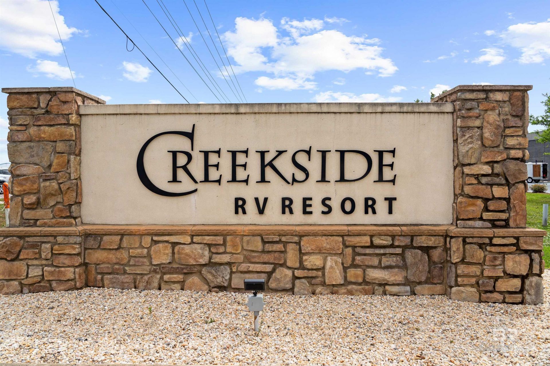 Want to be close to the beach without the beach price tag? This one hits different. Welcome to Creekside RV Resort, Lot 12, a deeded RV lot offering full hookups and truly easy ownership. Enjoy added conveniences like sprinkler service, trash pickup, Wi-Fi, and cable TV, all designed to keep things simple so you can focus on relaxing. Resort style amenities include a sparkling heated pool, stocked fishing pond, dog park, laundry facilities, bathhouse, pavilion, clubhouse, and an enclosed playground; everything you need to fully embrace the coastal lifestyle. Located just minutes from OWA Parks & Resort, Publix, and the Foley Sports Tourism Complex, and only about a 15-minute drive to the sugar-white sand beaches of Gulf Shores and Orange Beach. This location puts you close to it all. Use it as your personal getaway or take advantage of short-term rental potential; either way, you're investing in location, flexibility, and lifestyle. Close to everything. Easy to own. Ready to enjoy. The owner currently rents it out and it has stayed very consistent making around $1500-$1800/month through word of mouth but short term is also available. Located on Lot 12 is an enclosed day pavilion with furnishings plus a shed for storage. Buyer to verify all information during due diligence.