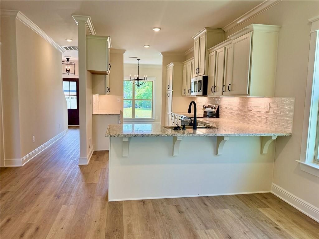 Experience refined living in this beautifully appointed 3-bedroom, 2.5-bath home nestled within a gated community in West Mobile. Thoughtfully designed with elevated finishes and timeless style, this home offers the perfect blend of comfort and sophistication. The main living area welcomes you with soaring 9' ceilings, rich LVP flooring, and a stunning wood-burning fireplace with an elegant brick surround, creating a warm yet upscale atmosphere ideal for both entertaining and everyday living. The gourmet kitchen features gleaming granite countertops, upgraded painted cabinetry, and a seamless flow into the living and dining spaces. Retreat to the luxurious primary suite, where you'll find a spa-inspired bath complete with a beautifully tiled walk-in shower, an oversized soaking tub, and refined finishes throughout. Ceramic tile flooring in all baths and the utility room enhances both durability and design. Additional highlights include a convenient half bath, a spacious double car garage, and Gold Fortified construction.