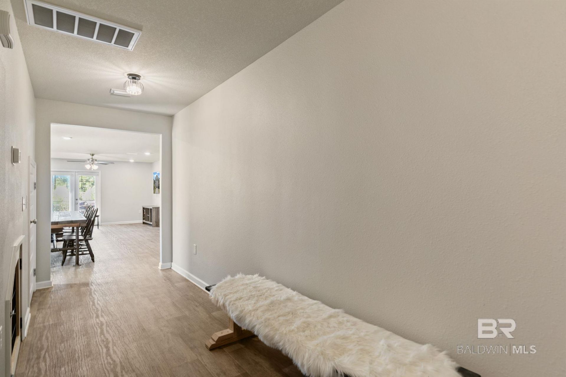 Welcome home to 32234 Calder Court! This spacious 5-bedroom, 3-bathroom property is located in Churchill Subdivision of Spanish Fort. Upon entering, you are greeted by a long foyer that opens into the home's inviting open-concept living space. The kitchen features painted cabinets, granite countertops, beautiful subway tile, walk-in pantry, and a breakfast bar. A secondary bedroom and a full bathroom is conveniently located on the main level. Upstairs, you'll find the primary suite complete with a large walk-in closet. The primary bathroom includes dual vanities, a soaking tub with a TV mounted to watch your favorite shows while soaking, and a separate shower. Additional bedrooms are spacious and share a full bathroom just down the hall. Off of the living space you will find an extended back deck overlooking the yard that backs up to woods. This home is built GOLD FORTIFIED!! The neighborhood offers a pool and playground for you to enjoy!!!! Buyer to verify all information during due diligence.