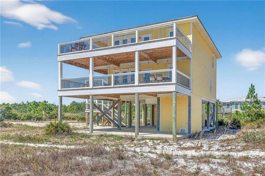Investment opportunity or private coastal retreat just steps from the beach. This fully furnished 5-bedroom, 4-bath home offers the perfect combination of comfort, flexibility, and income potential. The upper level features an open-concept kitchen and living area with stunning Gulf views, along with a spacious primary suite and an additional guest bedroom. The main level provides a second living area and additional bedrooms, creating an ideal layout for hosting guests or maximizing rental opportunities. Whether you're looking for a weekend getaway or a turnkey vacation rental, this home checks all the boxes. Conveniently located just one block from beach access and only minutes from Fort Morgan Marina, local restaurants, and nearby grocery options, this property offers both relaxation and accessibility. Buyer to verify all information during due diligence.