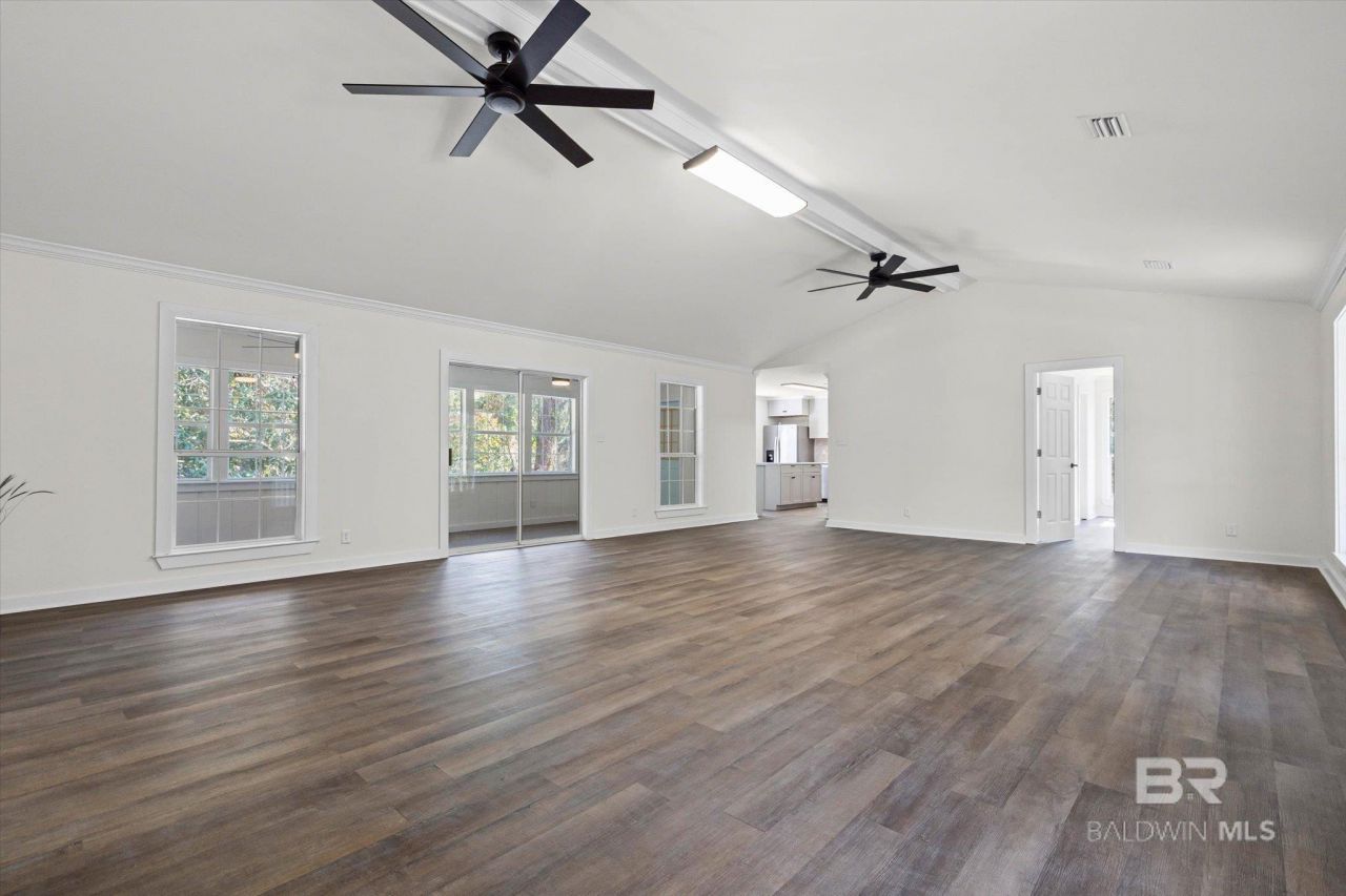 Welcome to beautiful Dauphin Island. This completely renovated raised beach house is tucked away among the trees mid-island and ready to move in. With every surface touched, this property features 3 bedrooms, 2 baths, a very spacious great room with an oversized sunroom. The living room has a cathedral ceiling & feels extra spacious with all the natural lighting.The open-concept kitchen offers plenty of cabinetry, an island, farmhouse sink, granite countertops, stainless steel appliances (refrigerator, electric range, dishwasher, microwave), tiled back splash and a pantry. The laundry room off the kitchen has space for an extra refrigerator or freezer.The primary bedroom offers two closets, a private bath with double sinks, luxury shower, and plenty of storage with the added linen closet. The hall bath features a tub/shower combo, dual sinks, and linen closet splitting the two guest bedrooms. With crown molding, light and airy smooth walls and ceilings throughout, this home is ready for its next owner to enjoy island living at its best. Under the house, there's an abundance of storage, entertaining and parking arrangements here. Enjoy stunning sunsets and sunrises, world-class fishing, and a welcoming atmosphere that makes this island so special. Buyer to verify all information during due diligence.