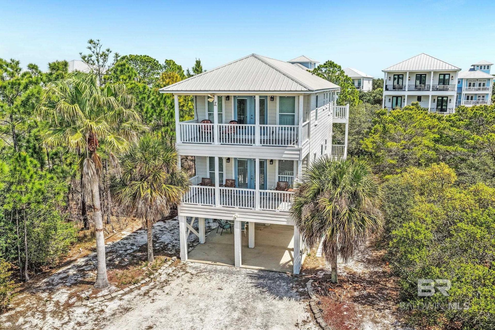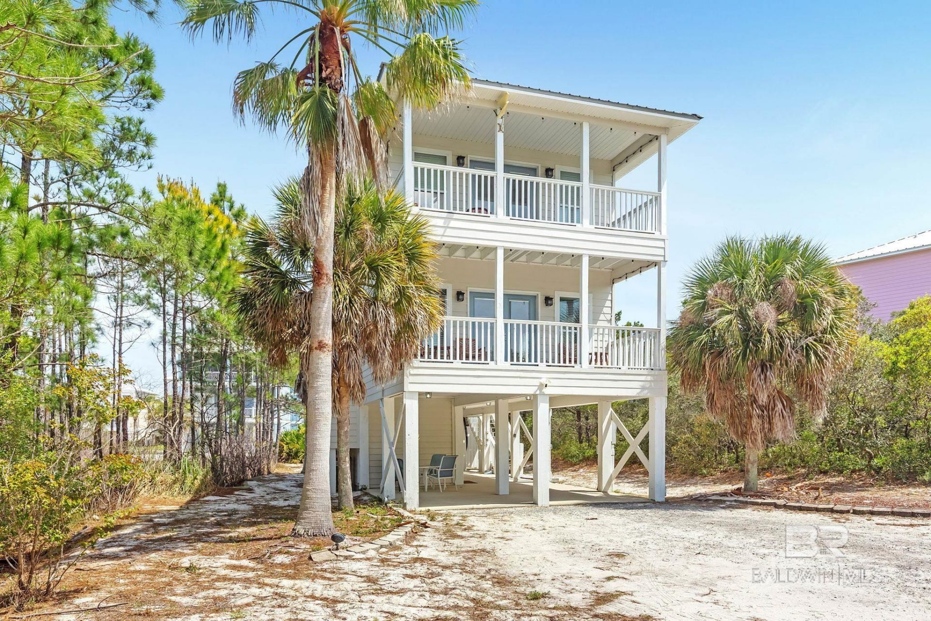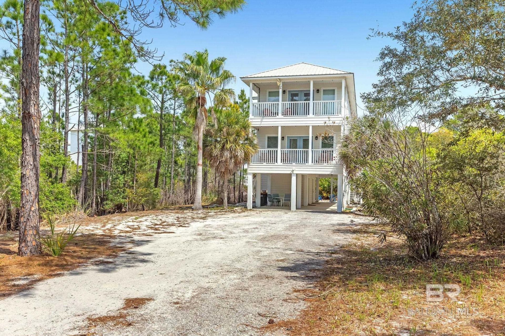 PRICED TO MOVE! DEEDED BEACH ACCESS ? HALF-ACRE LOT ? STRONG RENTAL POTENTIAL Casa Palma is a fully furnished, recently remodeled 3-bedroom, 3.5-bath home located just a short 3?5 minute walk to the Gulf with deeded beach access. Positioned on a rare half-acre lot, the property offers privacy and space not typically found this close to the beach. The home features 10-foot ceilings, an open-concept living and dining area, and large windows providing abundant natural light. The kitchen includes granite countertops, a breakfast bar, and updated Maytag appliances. The floor plan includes a main-level bedroom with en-suite bath, an upstairs primary suite with private porch access, and a third bedroom with bunk and queen sleeping arrangements and its own bath. Additional features include double porches for outdoor living, an outdoor shower, fire pit area, and ground-level storage. Located near Kiva Dunes, beaches, golf, marina access, and dining. Suitable as a primary residence, second home, or income-producing rental property. Buyer to verify all information during due diligence.