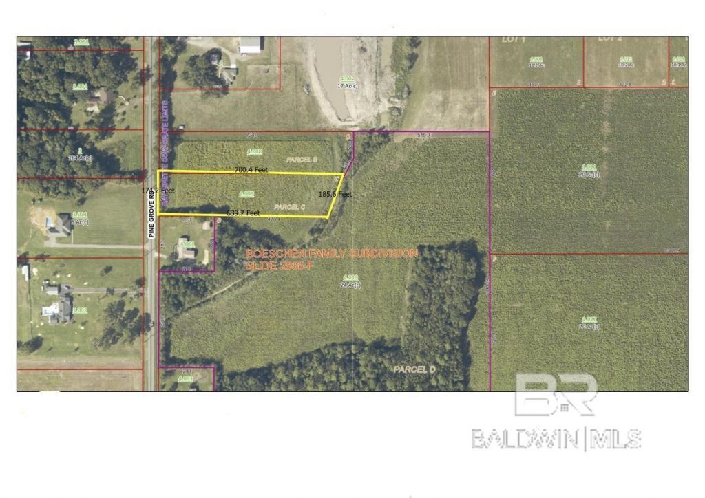 Welcome to over 2.4 acres on Pine Grove Rd?flat, cleared, and ready for your forever home! Situated within Bay Minette city limits and zoned R2, this property offers plenty of room to build your dream home and space to play. With 159 feet of road frontage for easy access, it's perfect for bringing along your cows, horses, chickens, and goats?just no swine or mobile homes. Enjoy city perks like fire, police, and water service, all while soaking up that peaceful country vibe. Buyer to verify all information during due diligence.